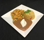 Rice, Beans, Pico de Gallo & Sour cream. -